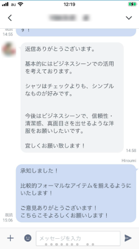 - さらに、着こなしに困った時は、いつでもlineで相談できる