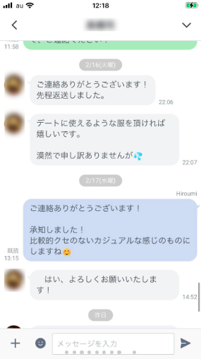 「UWear」ではlineで次のようなやりとりができます。